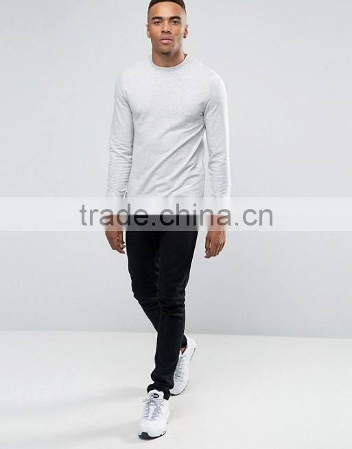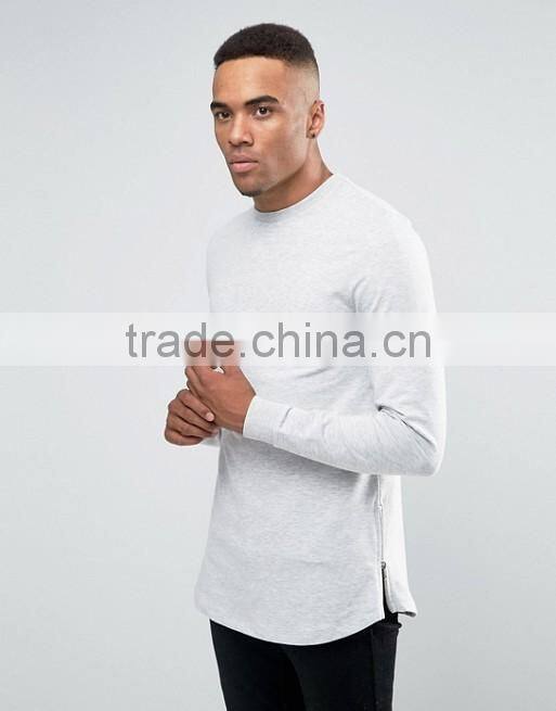 Home > Products > hoodie > Custom Crew Neck Without Hood Side Zip Longline Light Grey Men's Lightweight Cotton Polyester Casual Skinny Pullover Sweatshirt