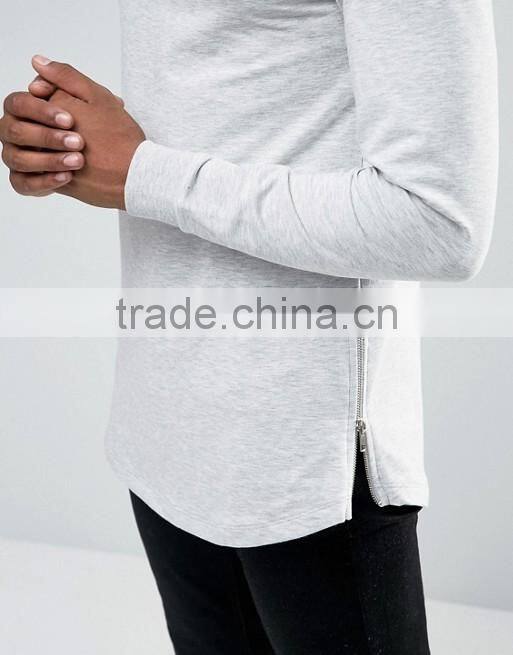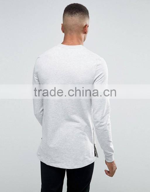 Custom Crew Neck Without Hood Side Zip Longline Light Grey Men's Lightweight Cotton Polyester Casual Skinny Pullover Sweatshirt