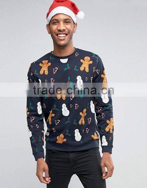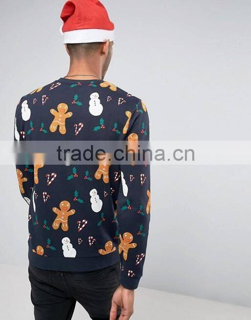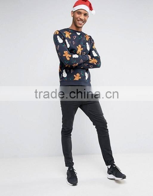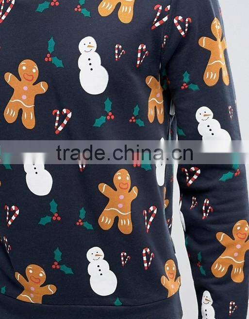 Hot Sale Custom Crew Neck Without Hood Black Men's 100% Cotton Casual Oversized Pullover Snow Printed Design Sweatshirt