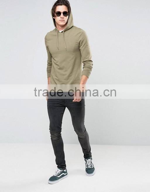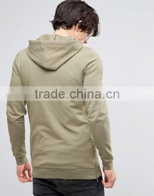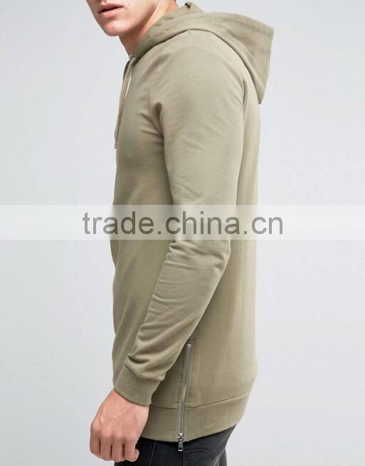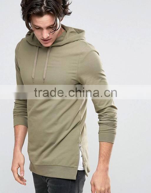 2016 Hot Sale Custom With Hood Longline Side Splits Brown Men's Lightweight 100% Organic Cotton Casual Pullover Blank Hoodies