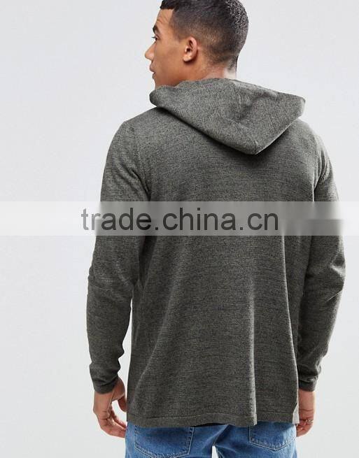 Custom Long Sleeve With Hood Contrast Pocket Longline Grey Men's 84% Cotton 16% Polyester Casual Fleece Pullover Hoodies