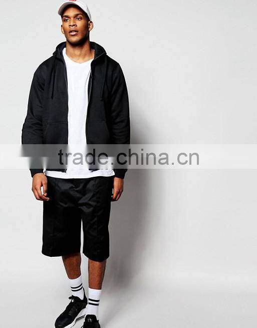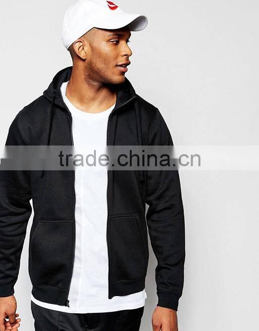 Custom Long Sleeve With Hood Black Men's 80% Cotton 20% Polyester Casual Plain Design Zipper Fleece Hoodies