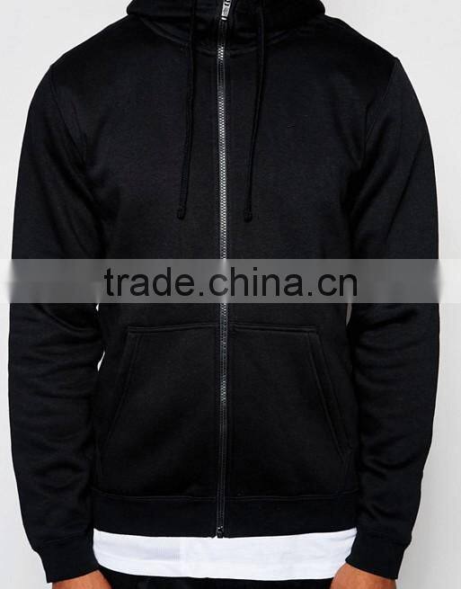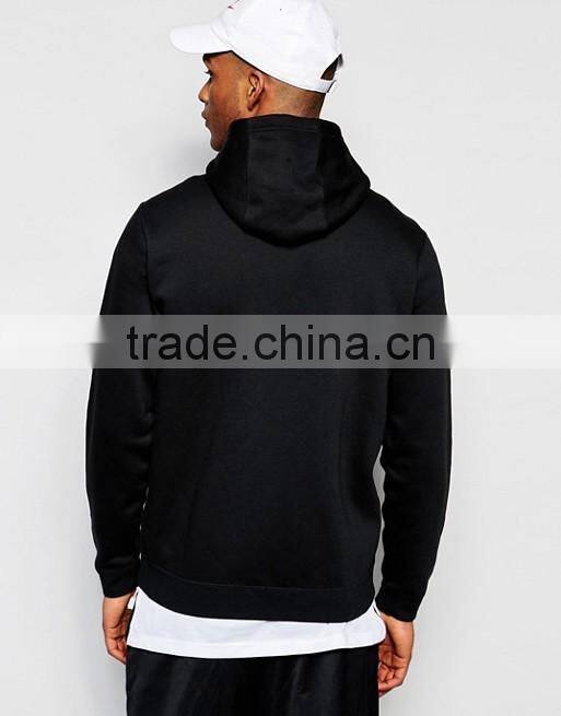 Custom Long Sleeve Pouch Pockets With Hood Longline Black Men's 100% Cotton Casual Comfort Fit Breathable Zipper Up Hoodies