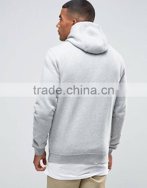 Custom Long Sleeve With Hood Contrast Pocket Longline Grey Men's 84% Cotton 16% Polyester Casual Fleece Pullover Hoodies