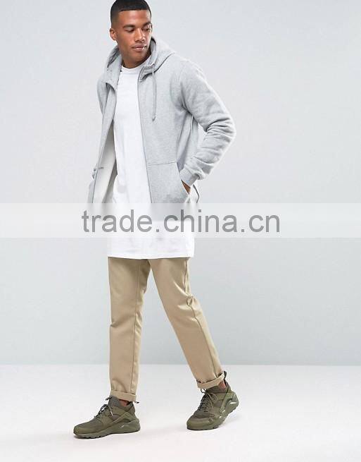 High Quality Custom With Drawstring Hood Side Pockets Grey Men's 80% Cotton, 20% Polyester Casual Breathable Zipper Up Hoodies
