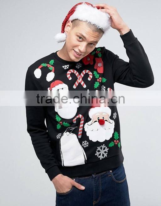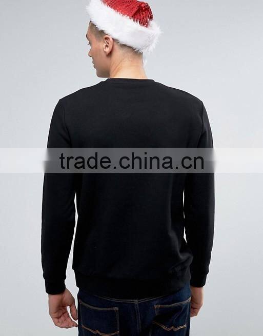 Home > Products > hoodie > Custom Long Sleeve Crew Neck Without Hood Printed Black Men's 100% Cotton Casual Comfort Fit Breathable Pullover Sweatshirts