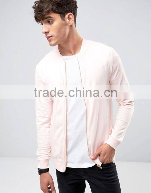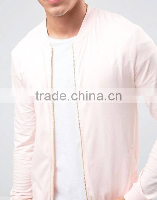 Home > Products > hoodie > Custom Long Sleeve Baseball Collar Without Hood Pink Men's 96% Cotton 4% Elastane Casual Skinny Slim Fit Zip Opening Sweatshirt
