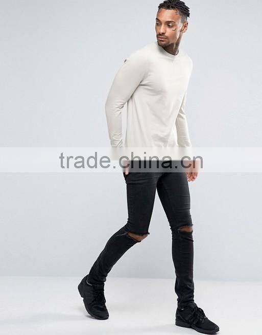 2017 Custom Long Sleeve Crew Neck Without Hood Men's 96% Cotton 4% Elastane Casual Skinny Tight Sweatshirt
