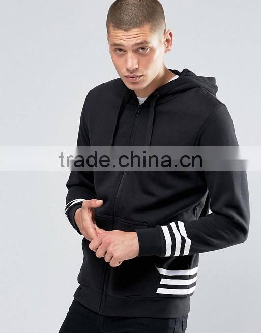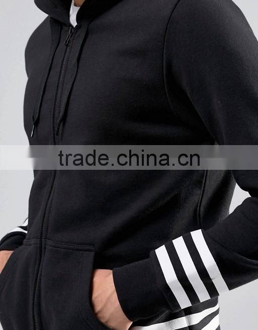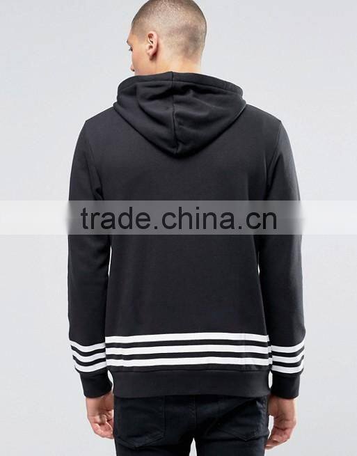 Custom Long Sleeve Stripe Hem And Cuffs With Hood Black Men's 70% Cotton 30% Polyester Casual Plain Design Zipper Hoodies