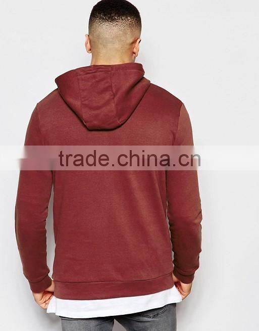 Custom Long Sleeve Longline Purple Men's 96% Cotton 4% Elastane Soft Jersey Skinny Fit Casual Plain Without Hood Hoodies