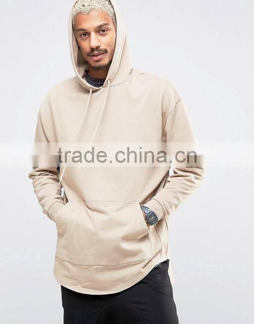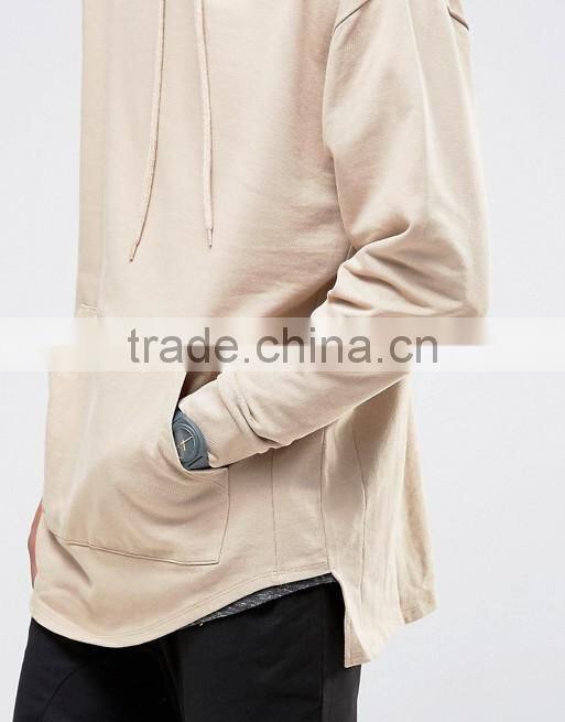 Custom Long Sleeve Stepped Hem Beige Men's 100% Cotton Soft Jersey Longline Oversized Regular Fit Casual Plain Design Hoodies