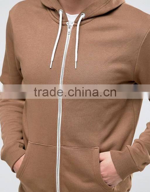 Custom Long Sleeve Brown Men's 77% Cotton 23% Polyester Jersey Regular Fit Casual Plain Design With Draws Hood Zipper Up Hoodies