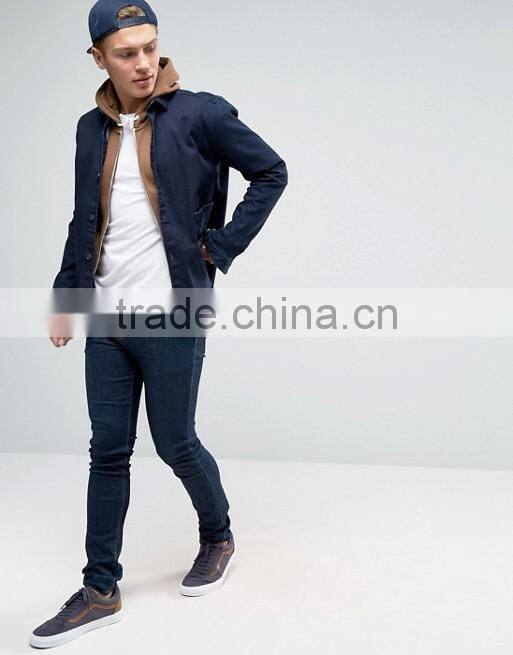 2017 Best Price Durable Press-Stud Fastening Drawstring Hood 100% Cotton Twill Navy Casual Men Winter Jacket