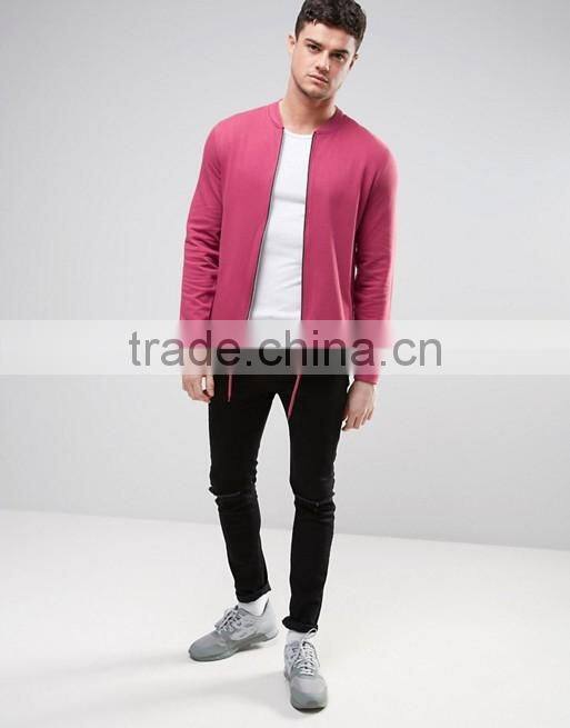 Home > Products > jacket > 2017 Manufacturer High Quality New Design Durable Baseball Collar 100% Cotton Sweat Pink Casual Men Running Bomber Jacket