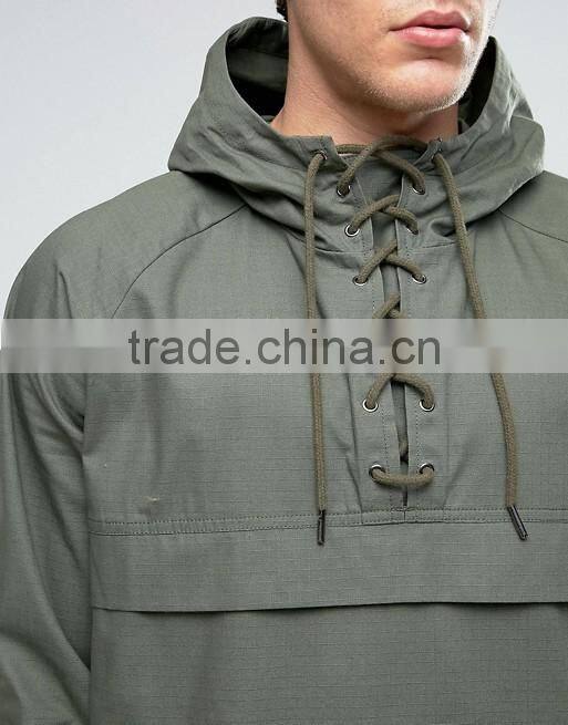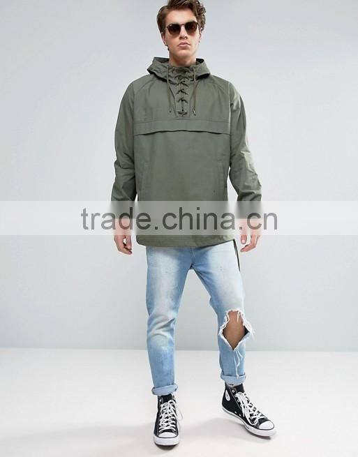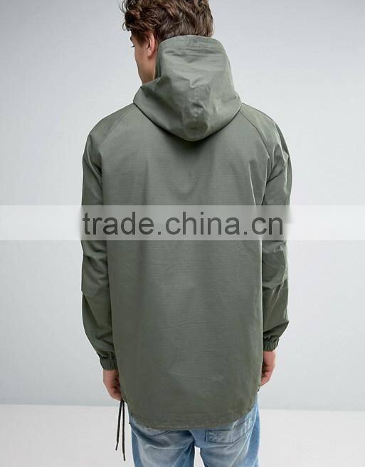Custom Best Price High Quality New Design Durable 100% Polyurethane Smooth Drawstring Hood Green Casual Men Wind Jacket