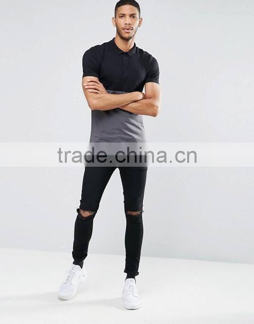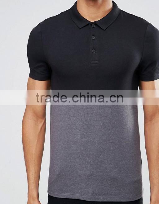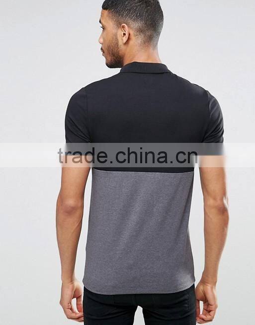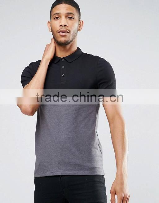 Custom Fashion Short Sleeve Black Grey Contrast Design Men's 100% Cotton Breathable Jersey Dry Fit Slim Casual Polo Shirt