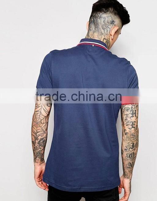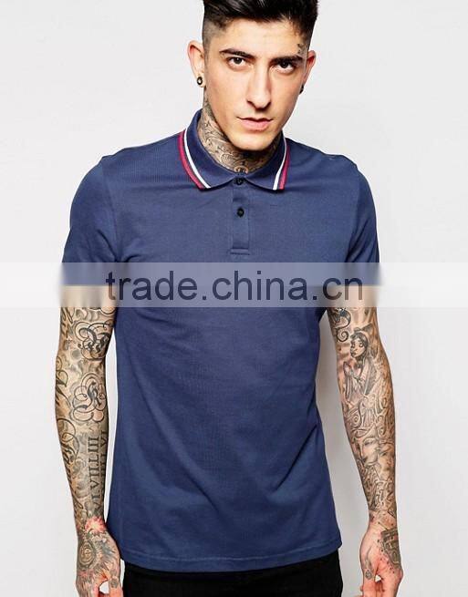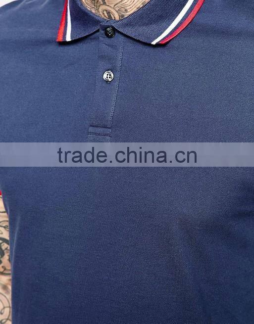 Good Quality Custom Fashion Short Sleeve Twin Tips On Collar And Cuffs Navy Men's 100% Cotton Pique Oversized Casual Polo Shirt