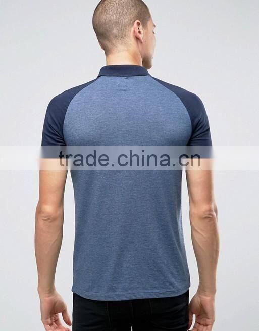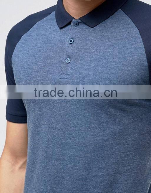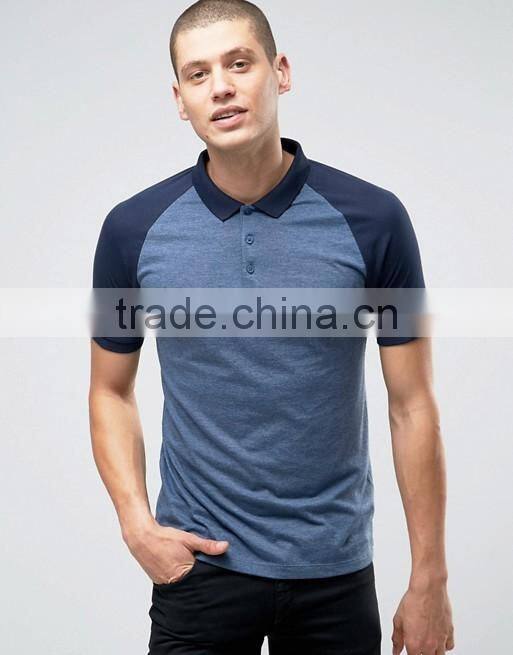 Home > Products > Polo shirt > Custom Short Sleeve Button Placket Contrast Collar And Raglan Sleeves Navy Men's 100% Cotton Jersey Slim Fit Casual Polo Tshirt