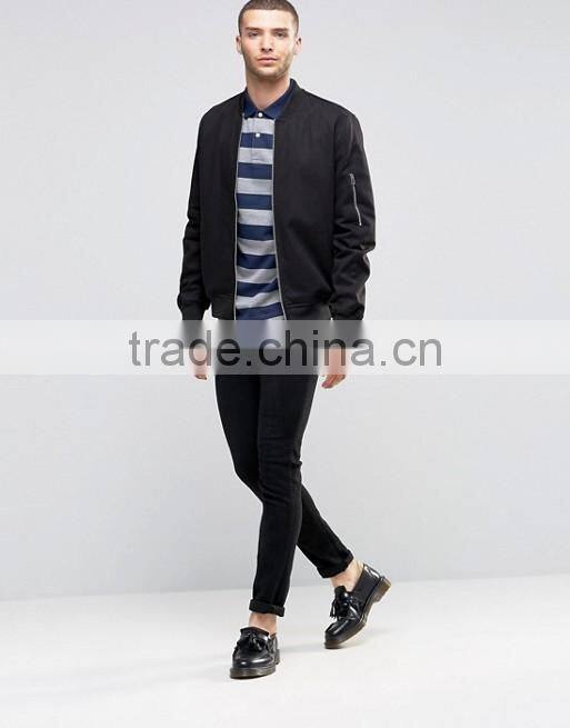 High Quality Custom Textured Stripe Short Sleeve Button Placket Black Men's 100% Organic Cotton Knit 200g Casual Polo Shirt