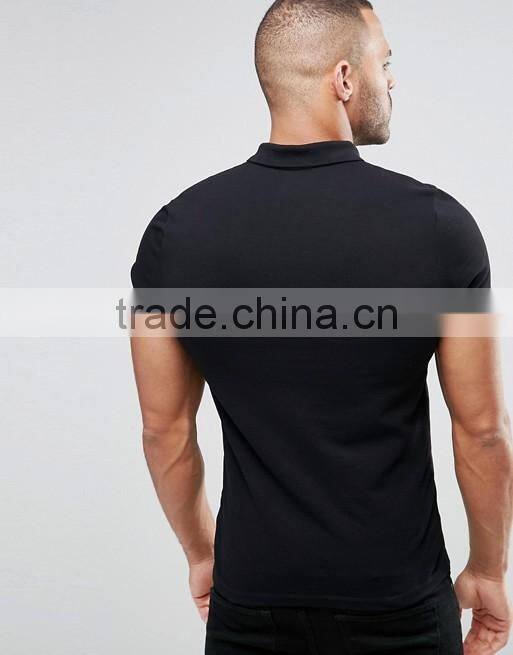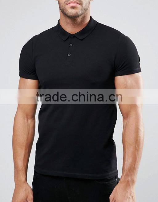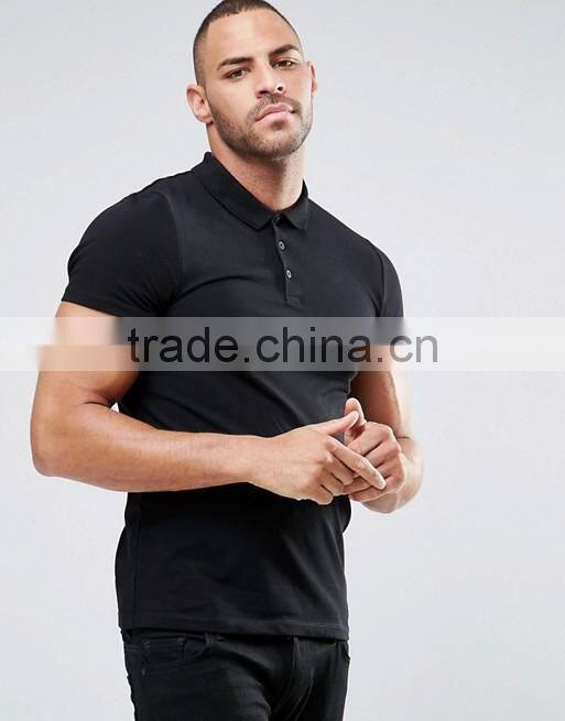 Cheapest Custom Short Sleeve Button Placket Flesh Design Black Men's 100% Cotton 200g Casual Polo T-Shirt