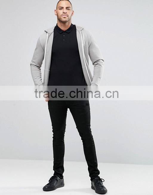 2016 New Design OEM Custom Long Sleeve Button Placket Men's 100% Cotton Knit 200g Casual Tight Skinny Slim Fit Grey Polo Shirt
