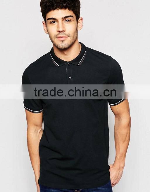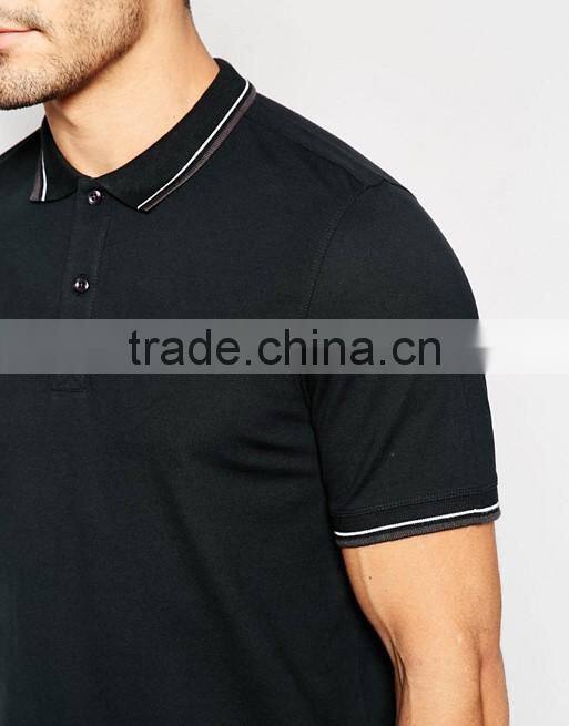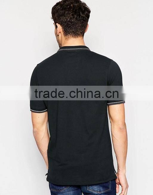 Home > Products > Polo shirt > Custom Short Sleeve Button Placket Collar Cuff Tip Black Men's 97% Polyester 3% Spandex Breathable Pique 200g Casual Polo Shirt
