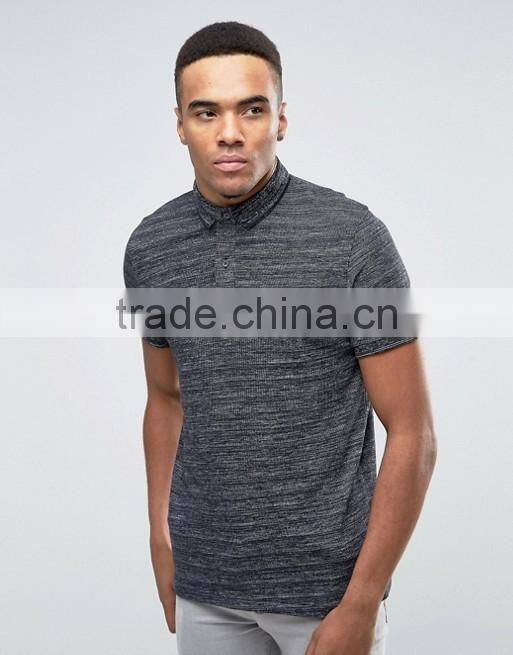 Short Sleeve Button Placket Stone Ribbed Knit Men's 52% Viscose 48% Acrylic 200gsm Casual Skinny Slim Fit Polo Collar T-Shirt