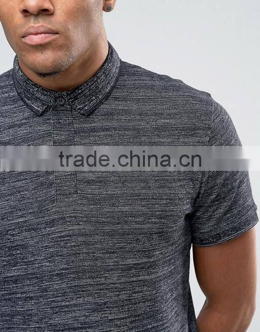 New Design Custom Short Sleeve Three Button Placket Dark Grey Men's Cotton Spandex 200gsm Casual Skinny Slim Fit Polo T-Shirt