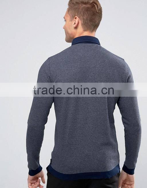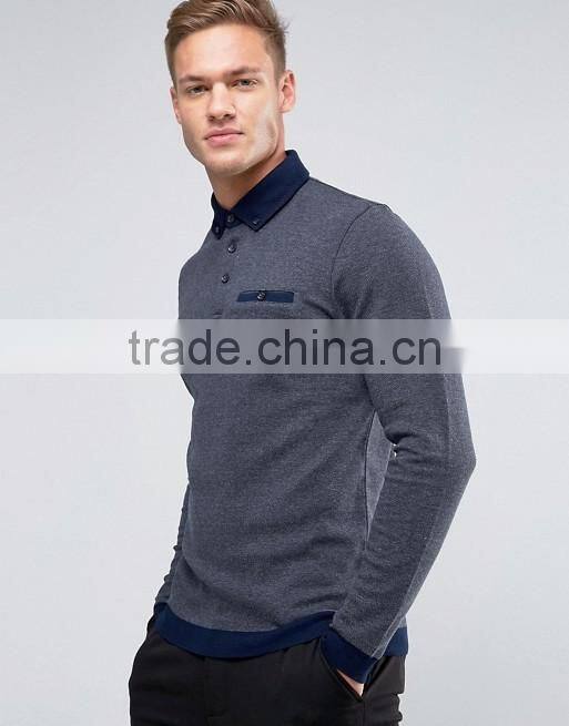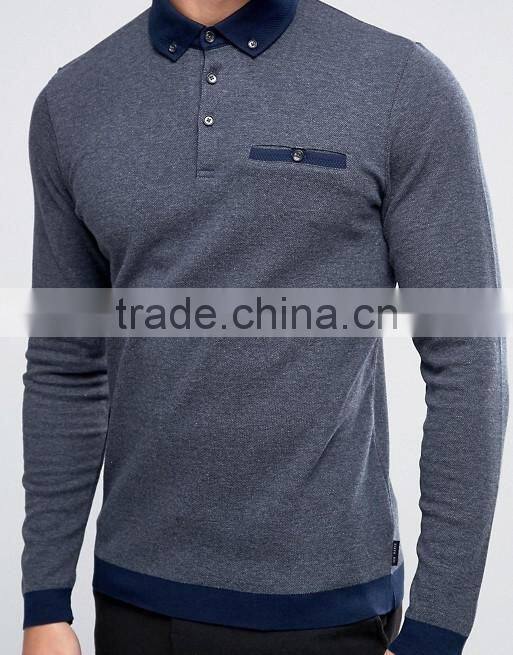 Custom Long Sleeve Button Placke Men's 65% Polyester 35% Cotton 200gsm Casual Grey Anti Shrink Plain Polo Tshirt