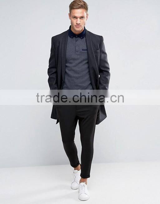 Home > Products > Polo shirt > Logo Long Sleeve Chest Pocket Button Placket Contrast Trims Dark Grey Men's 75% Cotton 25% Polyester 200g Casual Polo Tshirt