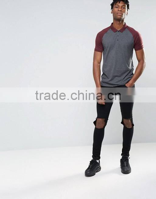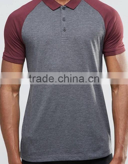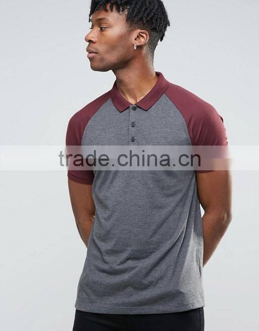 Custom Contrast Raglan Short Sleeve Button Placket Dark Grey Men's 50% Cotton 50% Polyester 200gsm Fashion Slim Fit Polo T-Shirt