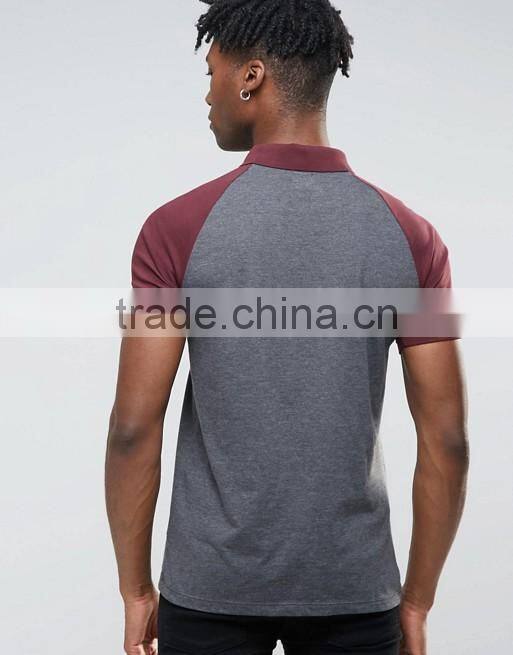 Home > Products > Polo shirt > Custom Contrast Raglan Short Sleeve Button Placket Dark Grey Men's 50% Cotton 50% Polyester 200gsm Fashion Slim Fit Polo T-Shirt