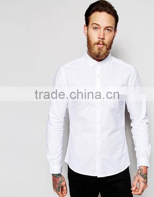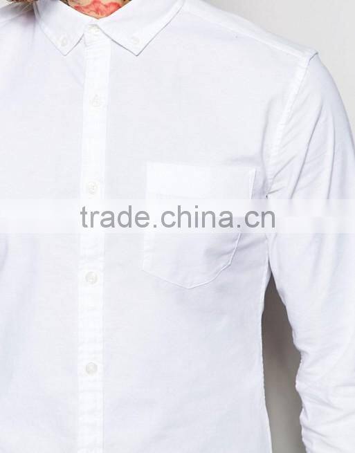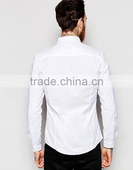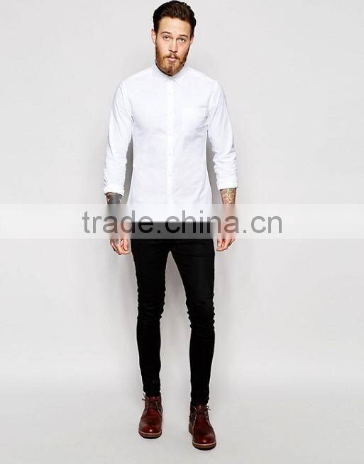 Home > Products > Shirts > 2016 Latest Design Long Sleeve Chest Pocket 98% Cotton 2% Elastane Soft Poplin Slim Fit Casual White Solid Mens Business Shirts
