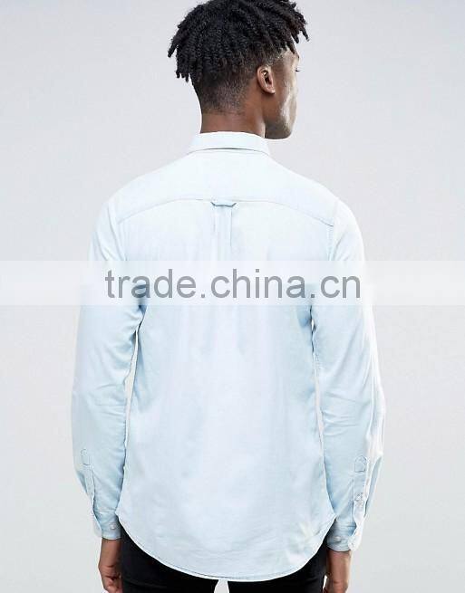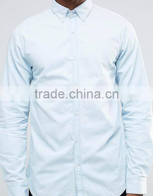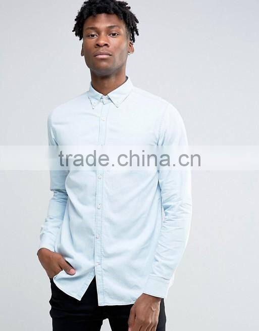 High Quality Custom New Design Point Collar Long Sleeve Mens 98% Cotton 2% Elastane Skinny Casual Blue Sky Dress Shirts