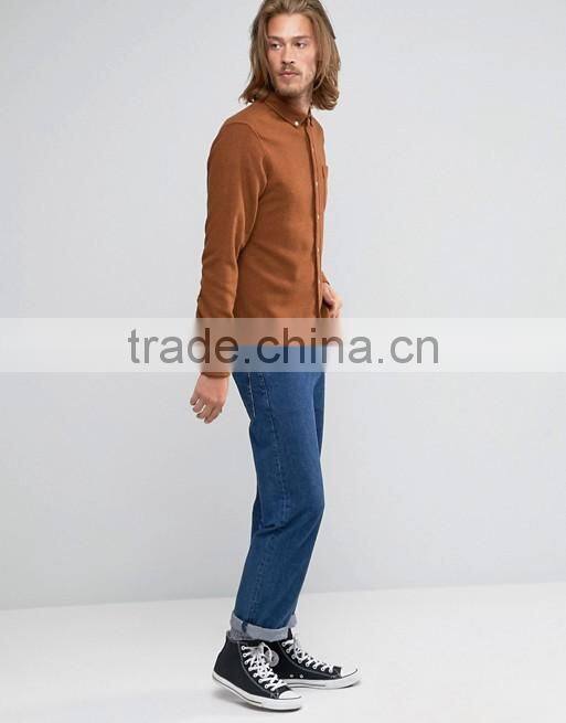 Long Sleeve Point Collar Mens Pre-Shrunk 98% Cotton 2% Elastane Breathable Slim Fit Casual Lightweight Denim Shirts
