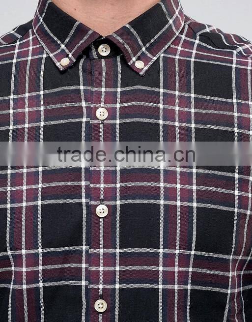 Custom Long Sleeve Spread Collar Mens 97% Cotton 3% Elastane Anti Wrinkle Skinny Casual Check Plaids Shirts