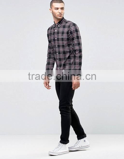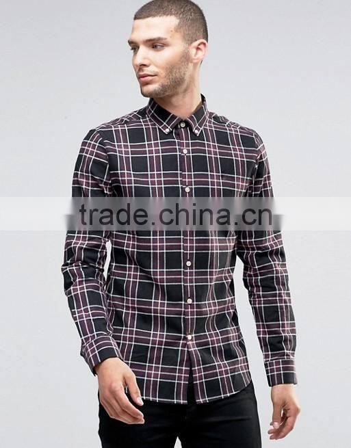 Latest Design Custom Long Sleeve Mens Pre-Shrunk 97% Cotton 3% Elastane Lightweight Check Print Skinny Fit Casual Shirts