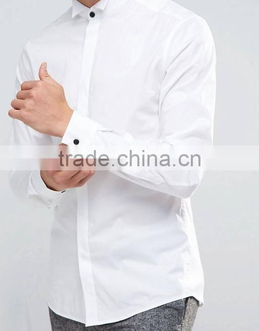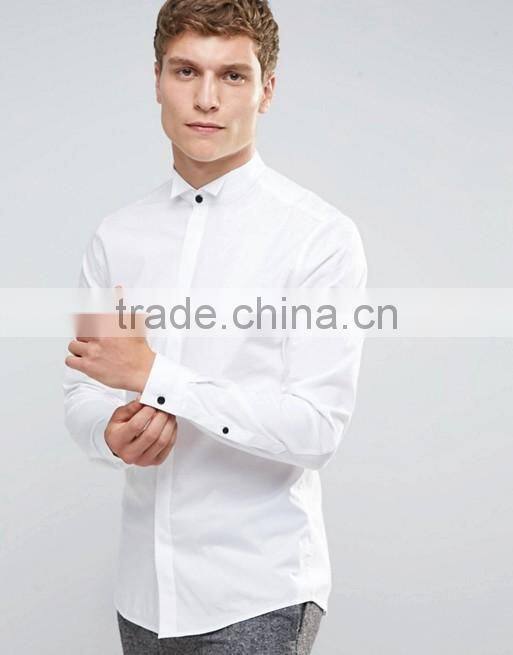 High Quality Custom Embroidery Logo Long Sleeve Fastened Point Collar Mens 100% Cotton Skinny Fit Casual White Dress Shirts