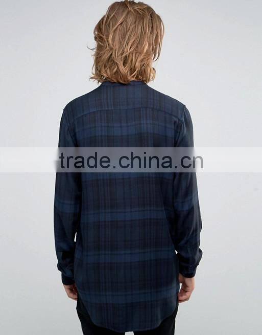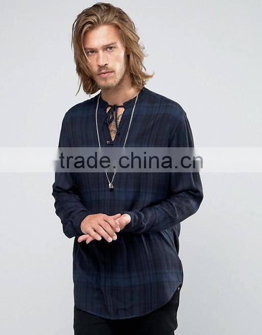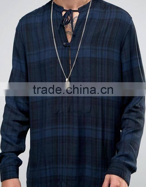 Home > Products > Shirts > Long Sleeve Collarless Design Mens Pre-Shrunk 100% Viscose Lightweight Check Print Comfort Fit Casual Shirts