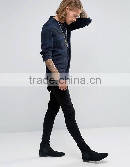 Custom Long Sleeve Spread Collar Mens 97% Cotton 3% Elastane Anti Wrinkle Skinny Casual Check Plaids Shirts