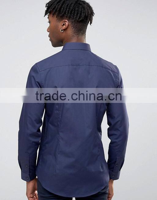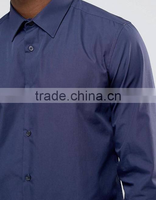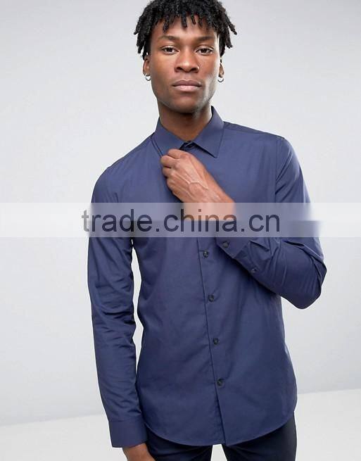 High Quality Custom Long Sleeve Button Down Collar Mens 100% Woven Cotton Casual Slim Fit Fashion Dark Navy Solid Shirts