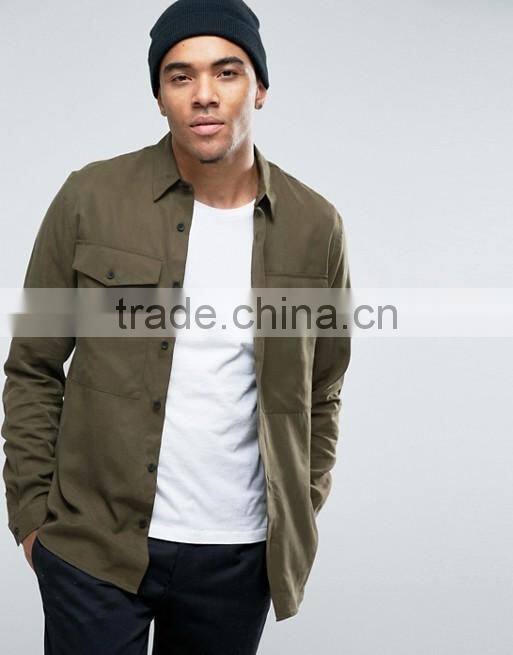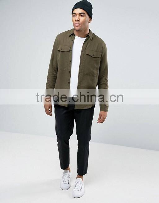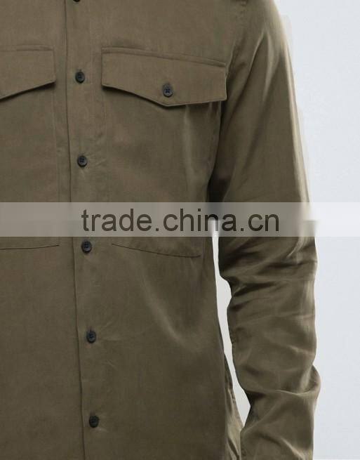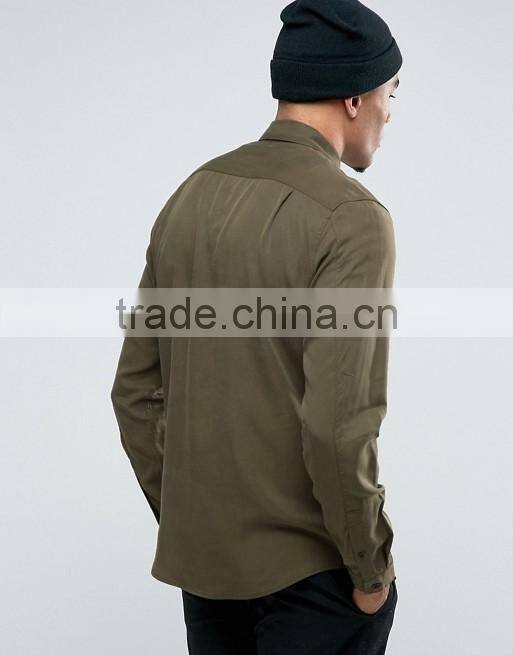 Home > Products > Shirts > Guangzhou High Quality Custom Long Sleeve Chest Pockets Spread Collar Mens 100% Tencel Lyocell Casual Army Green Shirts