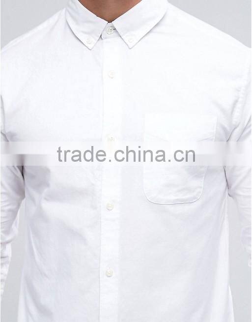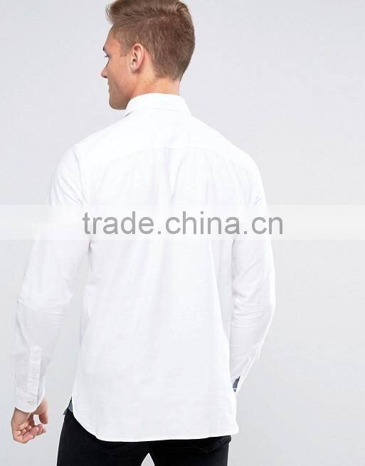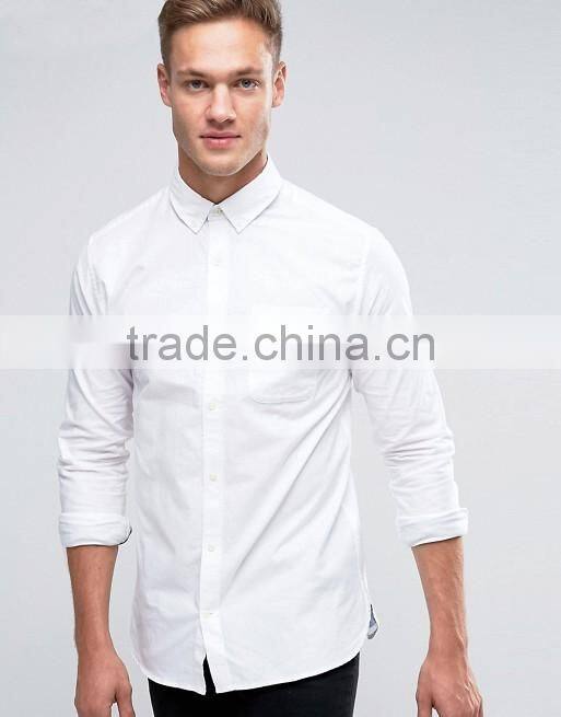 Home > Products > Shirts > High Quality Custom Long Sleeve Spread Collar Chest Pocket Mens Brushed 100% Cotton Slim Fit Casual Fashion White Solid Shirts