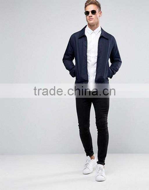 Guangzhou High Quality Custom Long Sleeve Spread Collar Mens Cotton Elastane Stretch Denim Casual Navy Solid Shirts