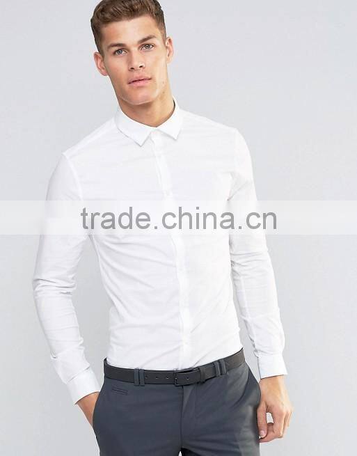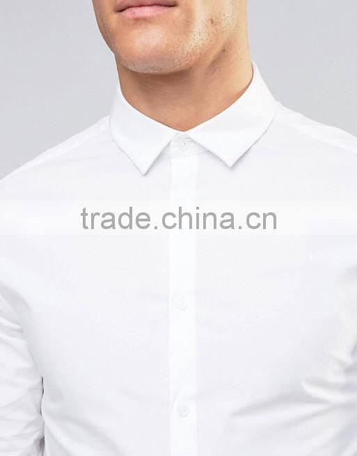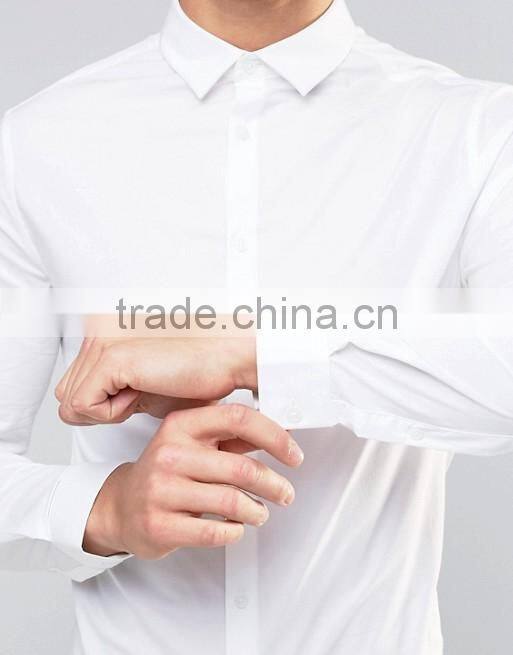 Home > Products > Shirts > Guangzhou High Quality Custom Long Sleeve Spread Collar Mens 97% Cotton 3% Elastane Stretch Skinny Fit Casual White Solid Shirts