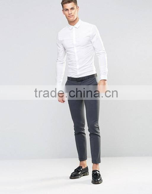 Guangzhou High Quality Custom Long Sleeve Spread Collar Mens 97% Cotton 3% Elastane Stretch Skinny Fit Casual White Solid Shirts