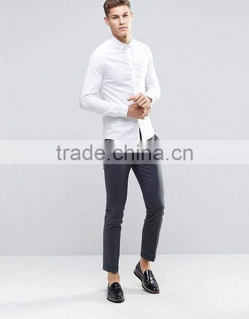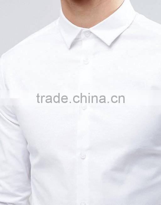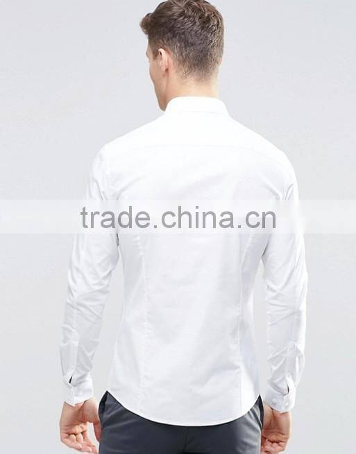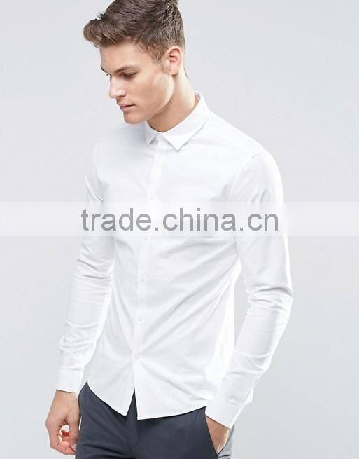 Guangzhou High Quality Custom Long Sleeve Spread Collar Chest Pocket Mens Cotton Elastane Casual Skinny Fit White Solid Shirts