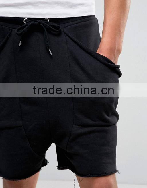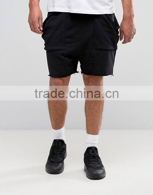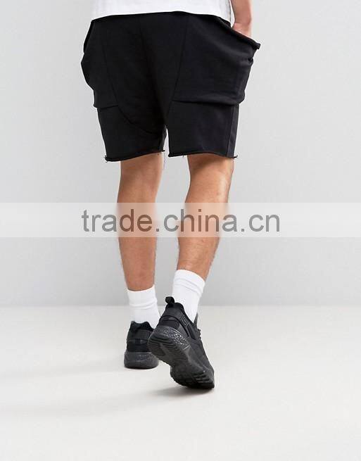 Home > Products > shorts > High Quality New Design Custom Raw Hem Drawstring Waist 100% Cotton Breathable Black Men's Sweat Big Side Pockets Fashion Shorts