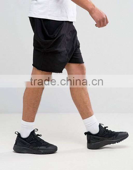 High Quality New Design Custom Raw Hem Drawstring Waist 100% Cotton Breathable Black Men's Sweat Big Side Pockets Fashion Shorts