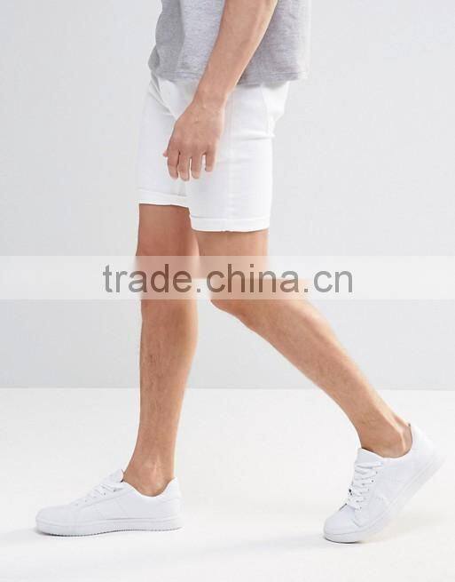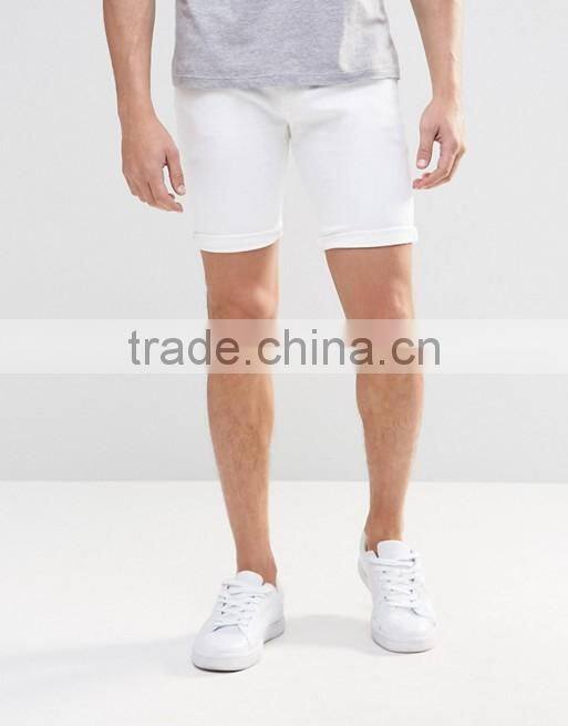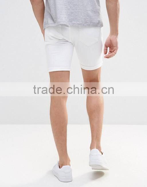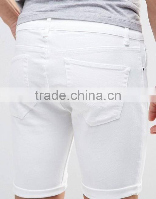 Latest Custom Functional Pocket Men's White Super Skinny Slim Fit 65% Cotton 35% Polyester Denim Concealed Fly Casual Hot Shorts